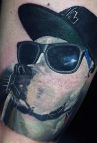 手臂很酷的卡通彩色狗和太阳眼镜纹身图案