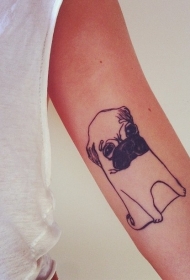 小臂黑色有趣的点刺狗和纸船纹身图案