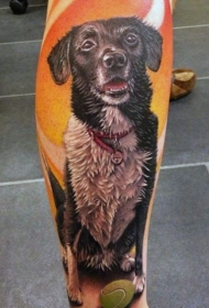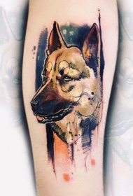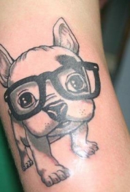 手臂有趣的卡通风格彩色可爱的狗纹身图案