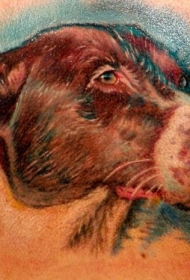 写实风格的彩色狗头像背部纹身图案