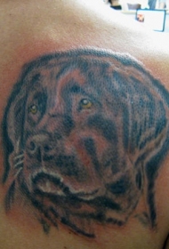 背部悲伤和聪明的狗头像纹身图案