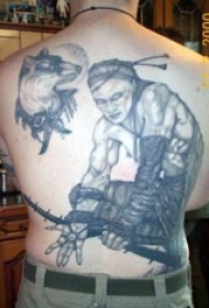 背部武士与狗纹身图案