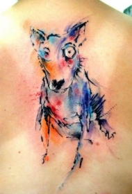 背部水彩有趣的小狗纹身图案