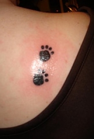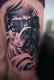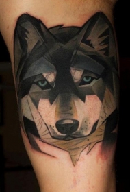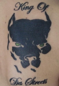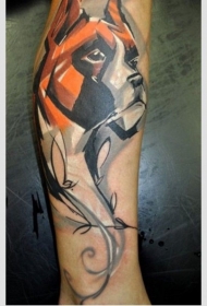 小腿非常漂亮的手绘黑色狗头像纹身图案