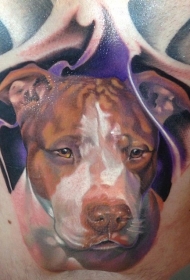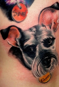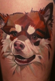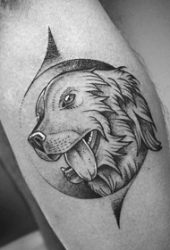 大臂雕刻风格彩色狗与心形小鸟纹身图案