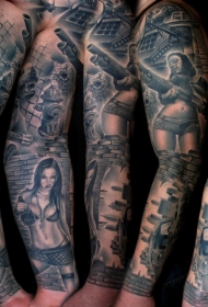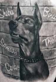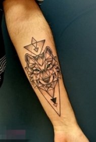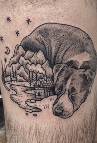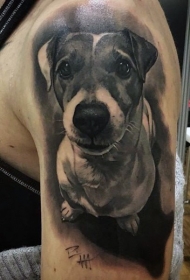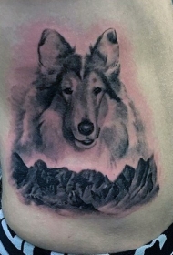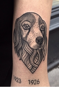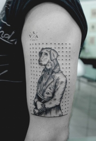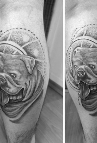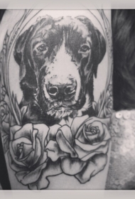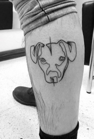 男生大腿上黑灰线条动物斑点狗纹身图片