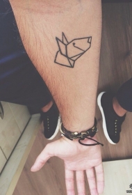 手臂上黑白灰风格点刺技巧简易狗纹身动物图片