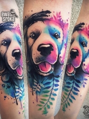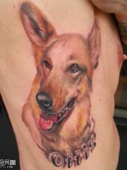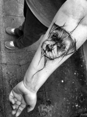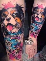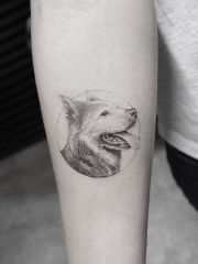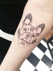 手臂上可爱的卡通风格狐狸和猎狗纹身图片
