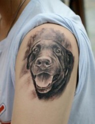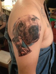 手臂三只小清新的狗(芬兰拉普猎犬、博美)实物与纹身图对比