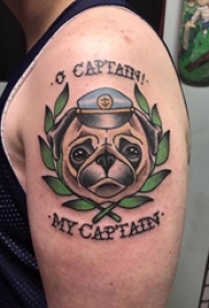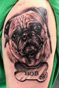小动物纹身 男生大臂上英文和小狗纹身图片