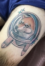 大腿纹身图女 女生大腿上彩色的小狗纹身图片