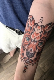 男生手臂上彩绘渐变几何简单线条小动物狗纹身图片