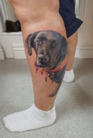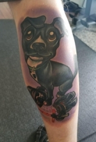 小狗纹身图片 男生小腿上彩色的小狗纹身图片