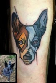 小狗纹身图片 男生手臂上彩色小狗纹身图片