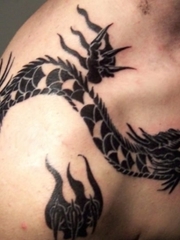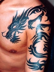 男子黑色过肩龙图腾纹身图片