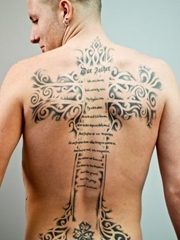 男性背上背着的大十字架纹身图片