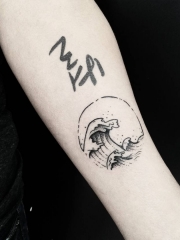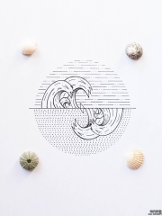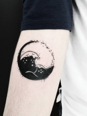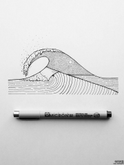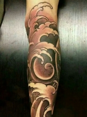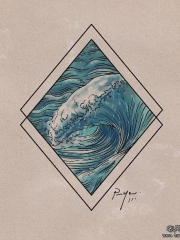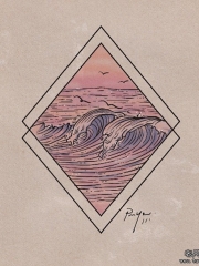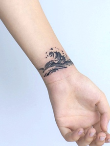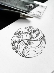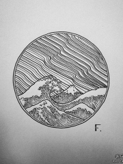 几何点刺小清新个性对称的海浪纹身图案手稿