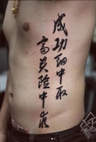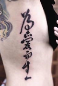 书法纹身 侧腰等部位的中文书法汉字纹身图案