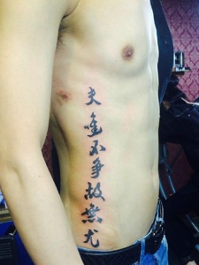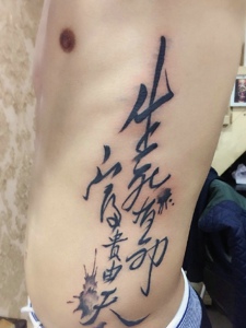 80后成功男士侧腰部的汉字纹身刺青