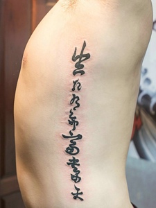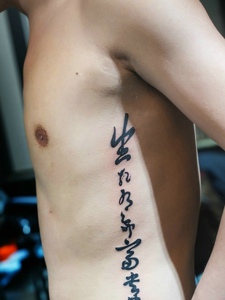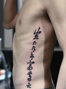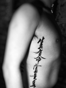 男士侧腰部个性汉字纹身图片
