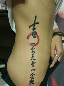 性感的侧腰部有着个性汉字纹身图片