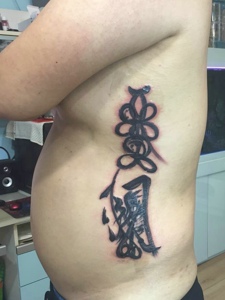 个性豪放的侧腰部花体汉字纹身图片