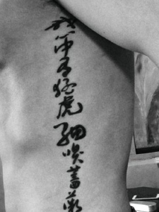 男士左边背部的个性汉字纹身图片
