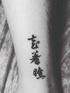 腿部个性独特的汉字纹身图片