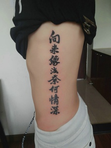 侧腰部汉字纹身图片滑嫩肌肤突出