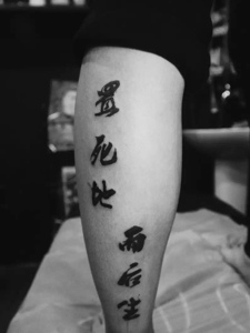 小腿处正楷汉字纹身图案