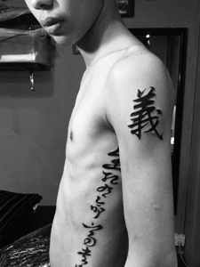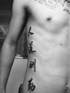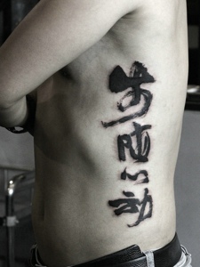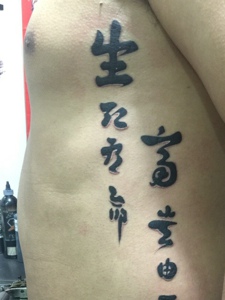 背部侧边的个性有型的汉字纹身图案