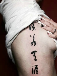 男士侧腰部书法汉字纹身图案有个性