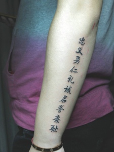 手臂外侧个性汉字的纹身刺青