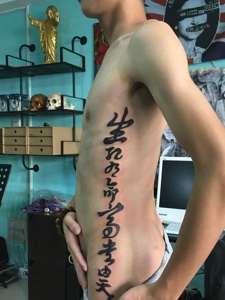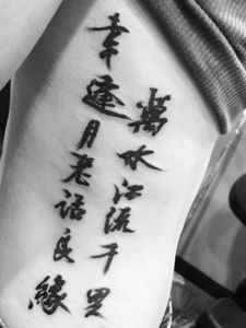 侧腰部的个性独特汉字纹身刺青