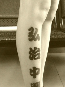 腿部外侧汉字纹身刺青显个性