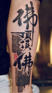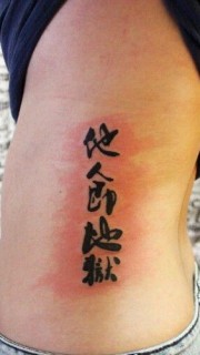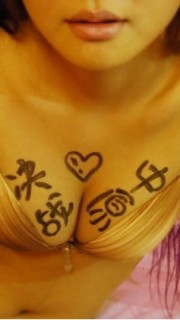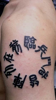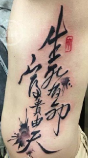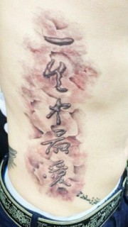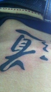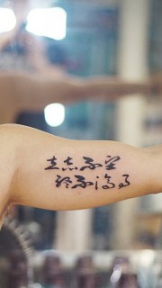 女生手臂简单喜欢的莲花与汉字刺青图案