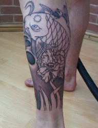 帅气经典的小腿鲤鱼纹身