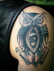 大臂猫头鹰纹身