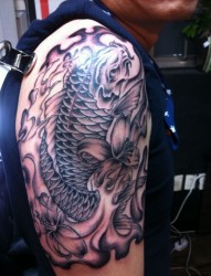 男士肩膀鲤鱼纹身图案