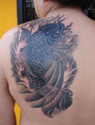 背部一款经典的黑白鲤鱼纹身