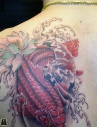流行经典的黑灰色鲤鱼莲花纹身手稿