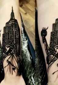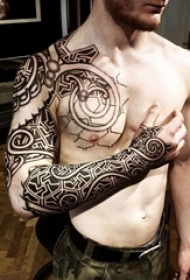 霸气的黑色点刺技巧几何简约线条纹身图案