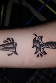 男生手臂上黑白点刺技巧个性匕首纹身图片