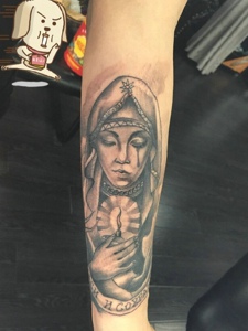 佛与魔结合的另类大臂黑白刺青