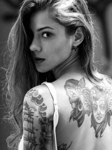 气质美女的时尚黑白图腾纹身