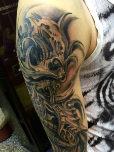 个性的帅气黑白半甲纹身