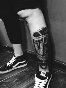 腿部革新经典的黑白图腾纹身图片