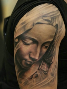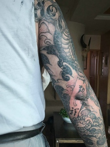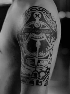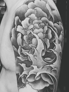 鲤鱼与莲花一起的黑白手臂纹身图片