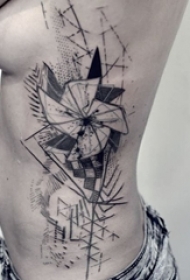 黑白点刺技巧个性的简单线条纹身图案