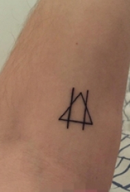 男生手臂上黑白简单线条几何元素三角形纹身图片